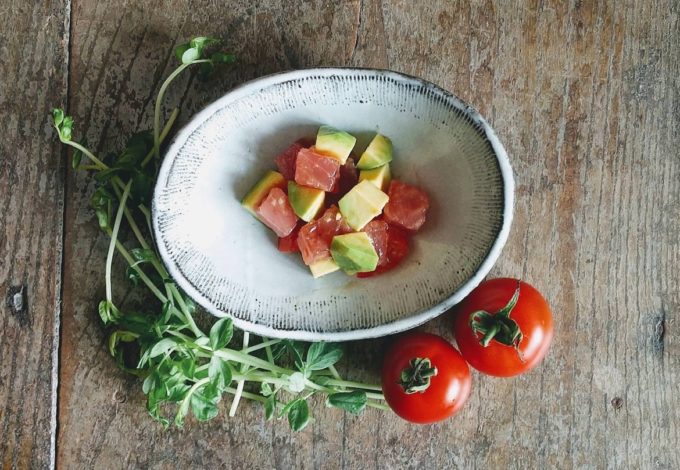 アボガドとマグロのブラッドオレンジスムーズ和え
