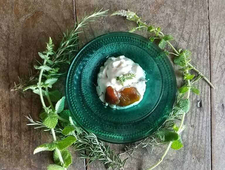 - 冷凍庫に入れて、30分毎にかきまぜ、全体が固まったら器に盛り、ペパーミントと残りの極上無花果を飾ったら出来上がりです。