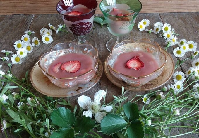 ビタミンCの宝庫イチゴと食物繊維たっぷりのアーモンドミルクで腸活美肌の美味しいプリンが簡単につくれます。